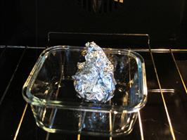 Pökkun hvítlauknum í álpappír og bökum í ofni við 200°c í 30 mín.